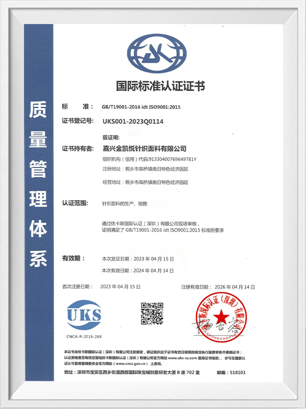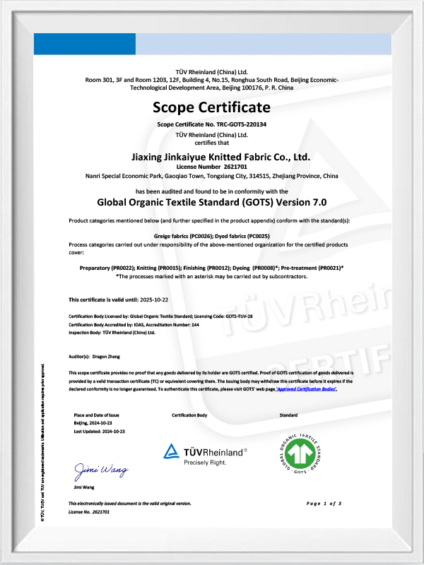 Ditubuhkan pada tahun 2000, Jiaxing Jinkaiyue Knitted Fabric Co., Ltd. Didedikasikan untuk menghasilkan fabrik rajutan mewah, syarikat itu mengkhususkan diri dalam pelbagai jenis fabrik, termasuk sutera, kapas tahan lama, linen, bulu, kasmir dan pelbagai gentian campuran.