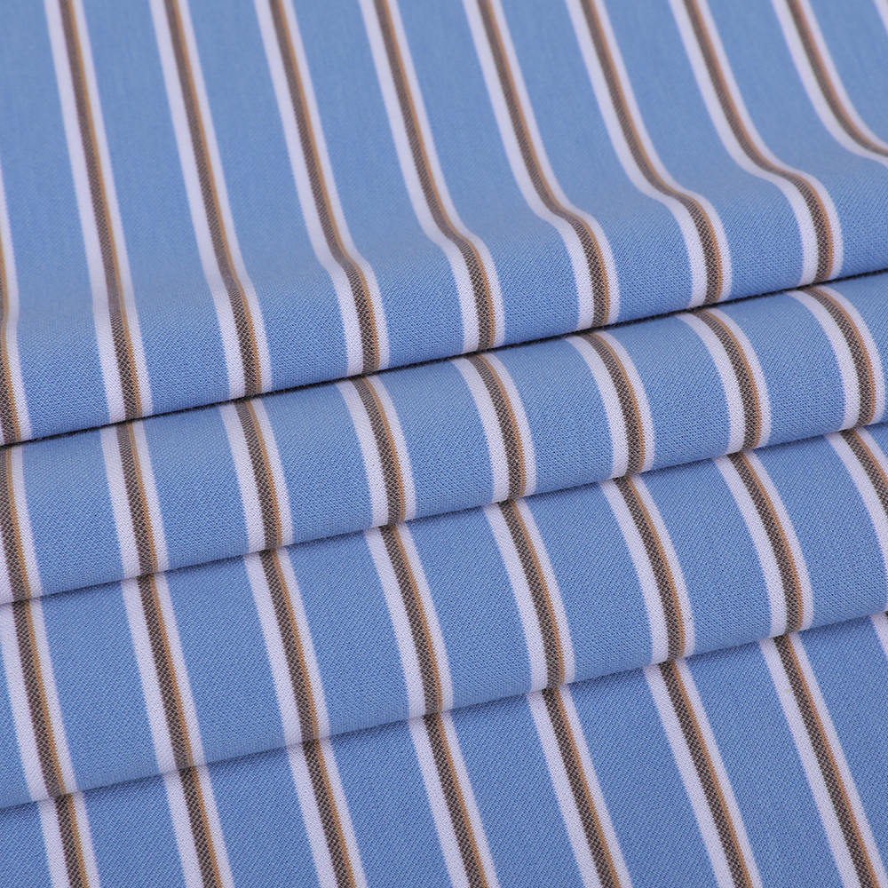 Permukaan kain baju berjalur yang tajam di-titik diedarkan dengan tekstur bijan yang halus dan seragam, yang dihubungkan dengan corak berjalur klasik untuk membentuk keindahan visual yang unik, yang bukan sahaja mengekalkan keanggunan tradisional unsur-unsur bergaris tetapi juga menambah lapisan yang kaya dengan butiran.