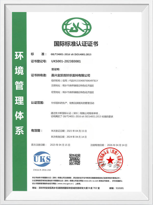 Jiaxing Jinkaiyue Knitted Fabric Co., Ltd. juga telah menjalankan penyelidikan dan penerokaan mendalam mengenai proses penamat. Syarikat ini mempunyai pasukan dan juruteknik R & D profesional yang didedikasikan untuk membangunkan teknologi dan produk penamat baru untuk memenuhi keperluan pelanggan yang berbeza. Syarikat juga memberi perhatian kepada komunikasi dan kerjasama dengan pelanggan, dan menyesuaikan dan mengoptimumkan produk mengikut keperluan khusus dan maklum balas pelanggan.